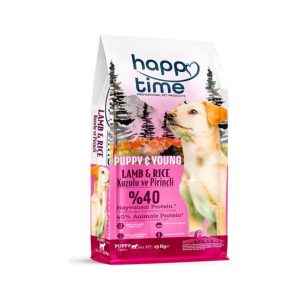 غذای خشک توله سگ و سگ جوان هپی تایم با طعم گوشت بره و برنج وزن 15 کیلوگرم