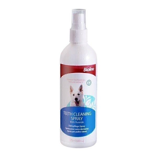 یکی از این روش ها، استفاده از اسپری فلوراید دار دندان سگ 175 میلی لیتر برند بایولاین ( Bioline Teeth Cleaning Spray with Fluoride 175ml) است.