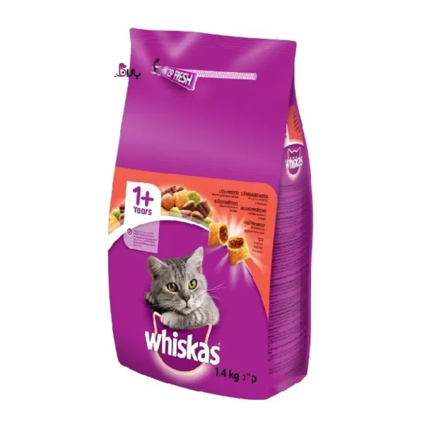 غذای خشک گربه ویسکاس با طعم گوشت گاو Whiskas Adult with Beef وزن 14 کیلوگرم