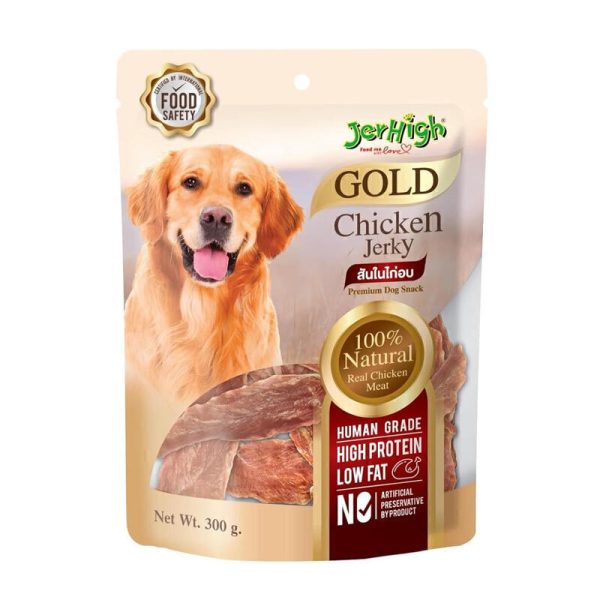 تشویقی سگ جرهای با طعم مرغ Jerhigh Gold Jerky Dog Snack With Chicken وزن 300 گرم