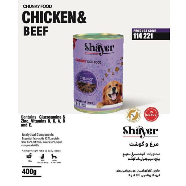 کنسرو غذای سگ با طعم مرغ و گوشت شایر وزن 400 گرم